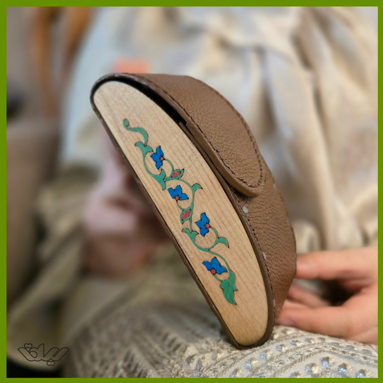 قاب عینک چرم و چوب طبیعی نگارگری شده سیلقا (کد ۲۲)