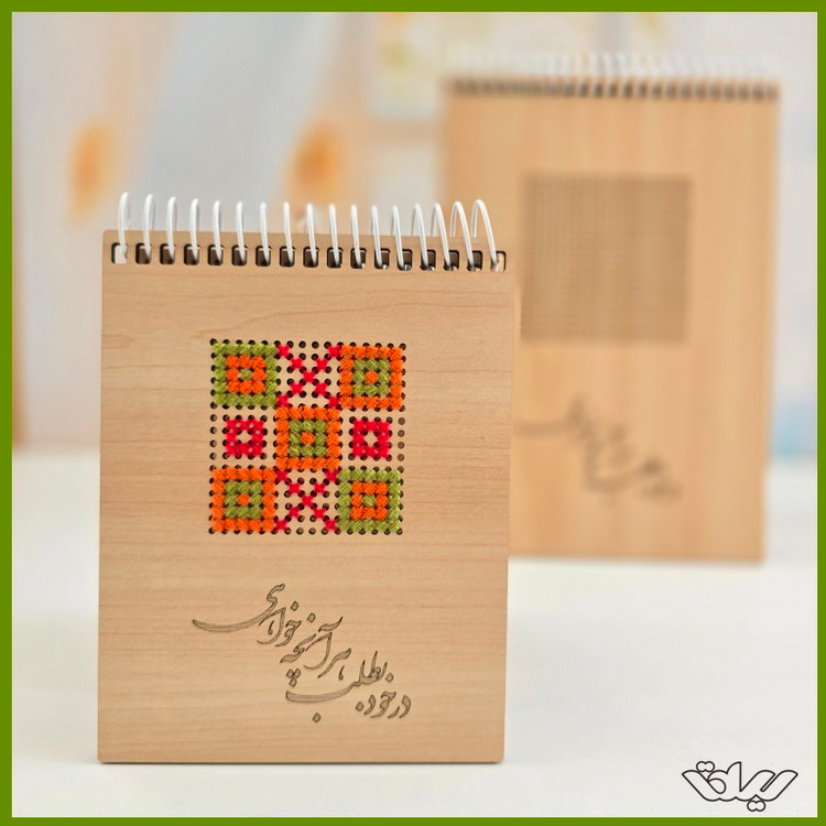 دفتر یادداشت چوبی با طرح شماره دوزی (کد ۱۱۲)